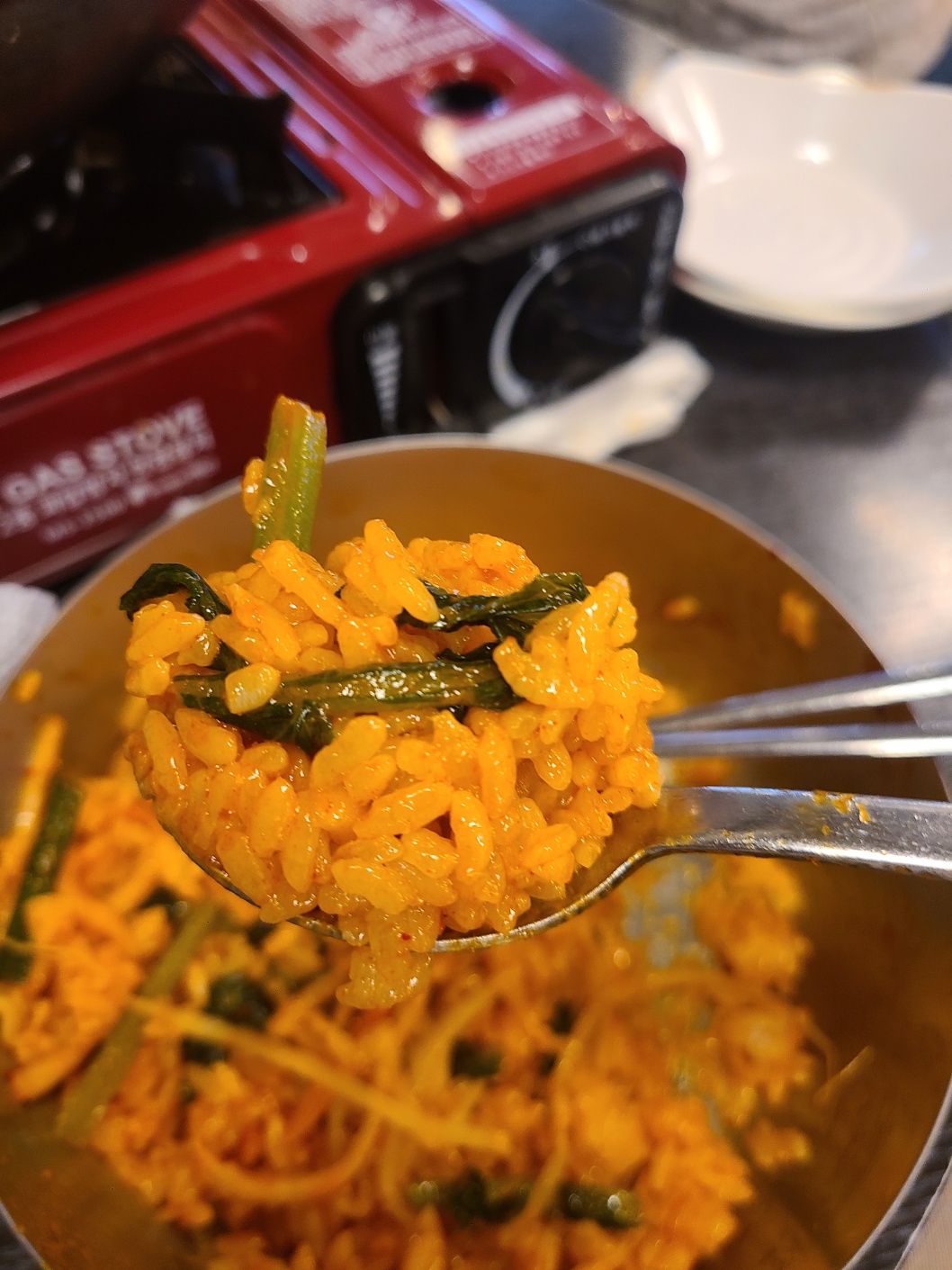 나온 된장찌개 국물 두어숟가락 넣어주면