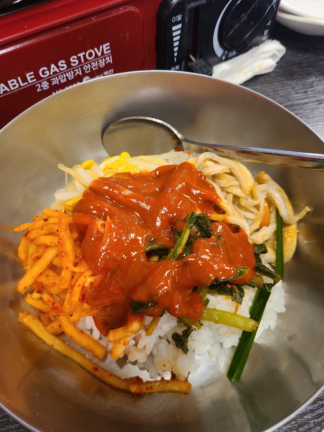 해물된장에 라면사리를 시키고 기다리면